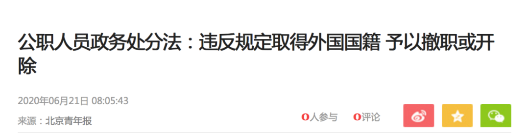 重磅 ◇ 7月1日起中国公职人员取得外国国籍或永居权将被撤职开除!
