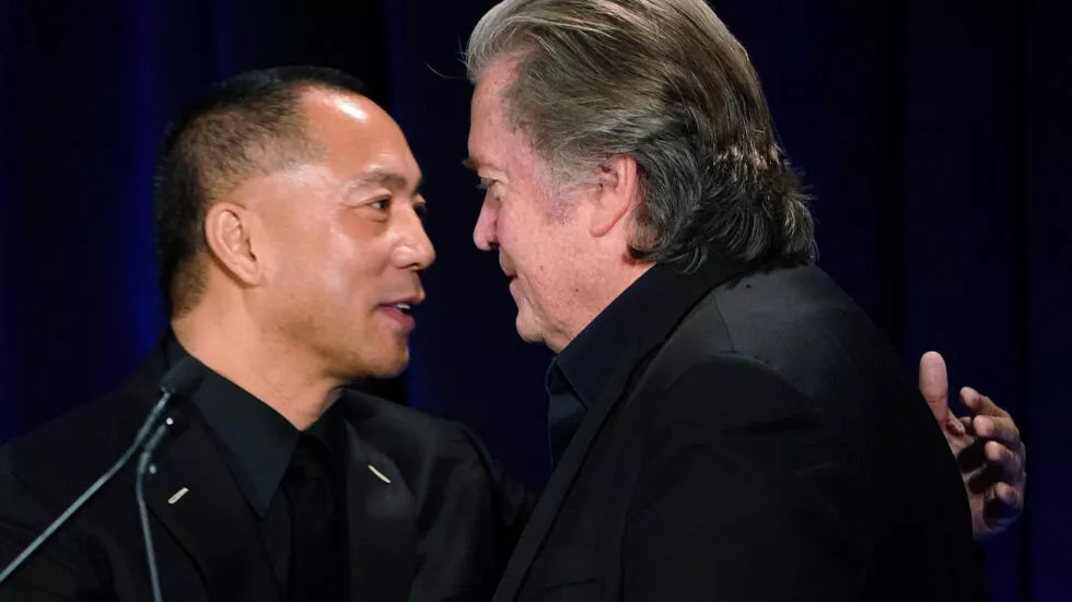紐約時報介紹:郭文貴在豪華船上宣布成立新中國聯邦時,美國右翼煽動者、曾任特朗普總統顧問的史蒂夫·班農也在場。郭文貴又名邁爾斯·郭(Miles Kwok),他完成了一個引人注目的轉變,從流亡海外的中國億萬富翁變成了美國右翼陣營的一員。