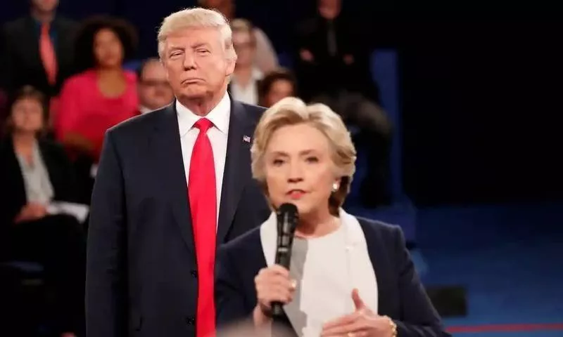 2016年10月9日,川普(左)与希拉里在总统辩论会上交锋。(路透资料照)