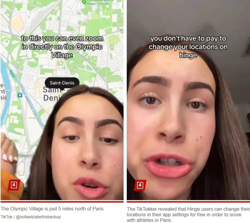 据《纽约邮报》(New York Post)报导,22岁的伊丽莎白(Sofia Elizabeth)近期发布的影片在TikTok上掀起讨论。她将交友软件Hinge的定位位置设为奥运选手村,希望能跟奥运选手配对,没想到最后竟然成功了。她在TikTok上分享自己配对的过程,立刻累积超过1400万次观看。