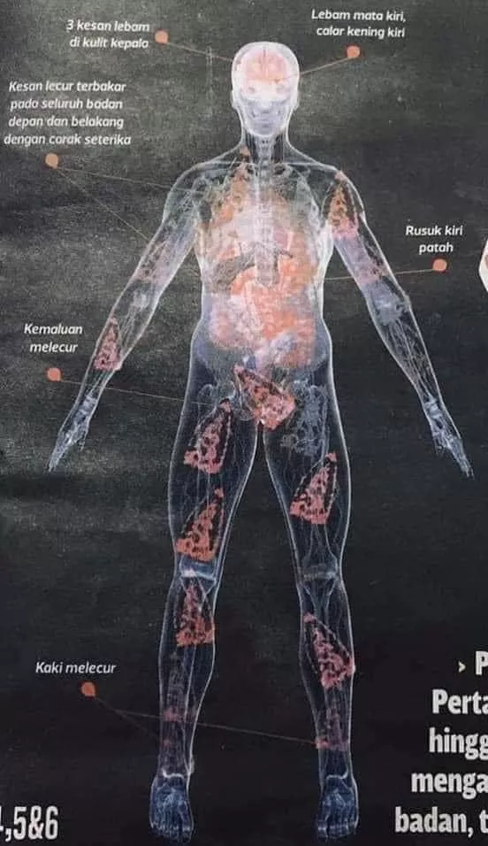 事後通過屍檢,法醫薩爾瑪·阿爾沙德(Salmah Arshad)發現祖法漢身上有多達90處傷口,其中29處為三級燒傷,全身燒傷面積達到80%,另外還有嚴重的瘀傷及骨折,這些傷口主要由熨斗、衣架、皮帶等造成。就連他的生殖器,也慘遭燙傷。