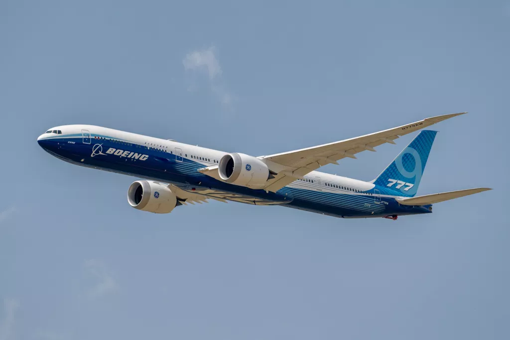 2023年6月21日,一架波音777X測試機, 2023 年巴黎航展上進行飛行展示。(示意圖:shutterstock/達志)