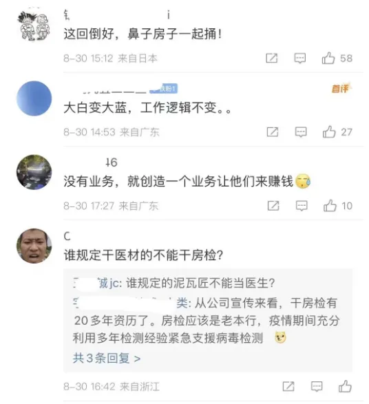 网友们调侃,“这回倒好,鼻子房子一起捅”,“大白变大蓝,工作逻辑不变”。“和当年做核酸检测一个模式,没有问题也要检测出问题,套维修基金的钱”。