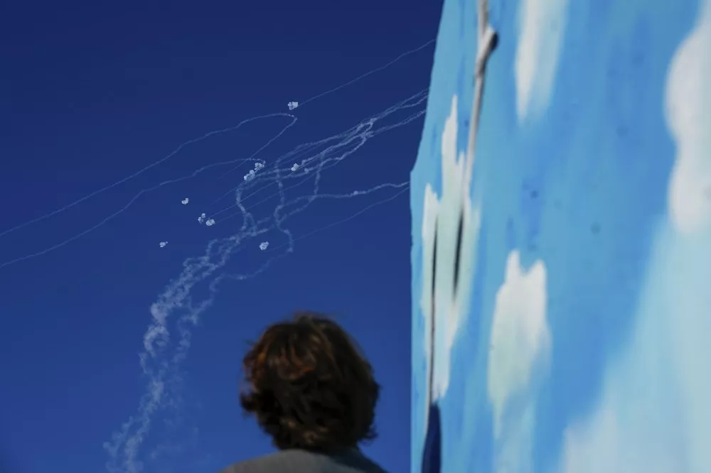 以色列能够快速、精准打击真主党人,是钻研情报近20年的成果。图为29日的以色列采法特,“铁穹”防空导弹抵御真主党人的攻击。(美联社)
