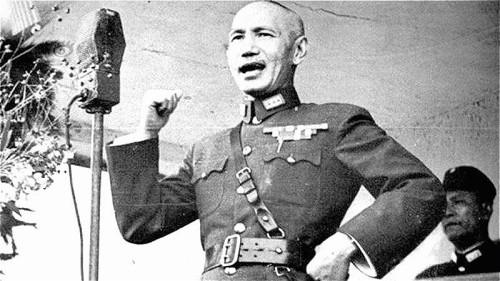 蒋介石向国军发表抗战讲话,身后站立者为副参谋长总长白崇禧。(图片来源: 网络图片)
