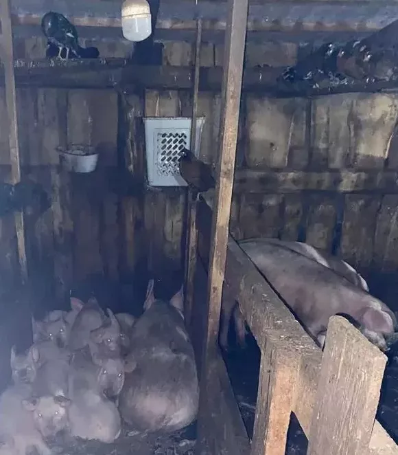 巴德尼先去了他们家查看,但在屋里没找到人,于是拿着手电筒走进猪圈。