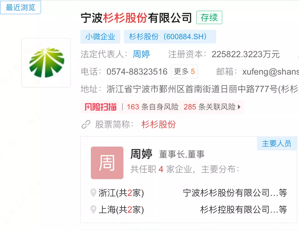 首先需要厘清的是,杉杉股份與杉杉控股是兩家公司。A股上市公司杉杉股份,是“杉杉系”的核心資產,受到杉杉控股的間接控制。目前,周婷仍是杉杉股份的法定代表人與董事長。