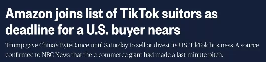 路透社和纽约时报都有消息称,亚马逊周三提交了对TikTok的竞标。