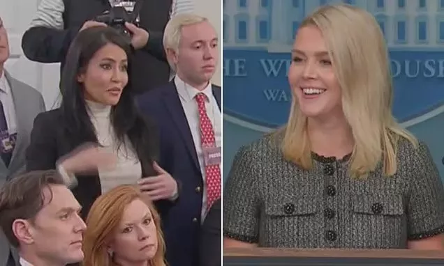 当地时间4月11日,白宫新闻秘书卡罗琳·莱维特 (Karoline Leavitt),站在简报室内呵呵笑,而能够让她一改咄咄逼人姿态的人,正是女记者卡拉·卡斯特罗诺娃 (Cara Castronuova)。