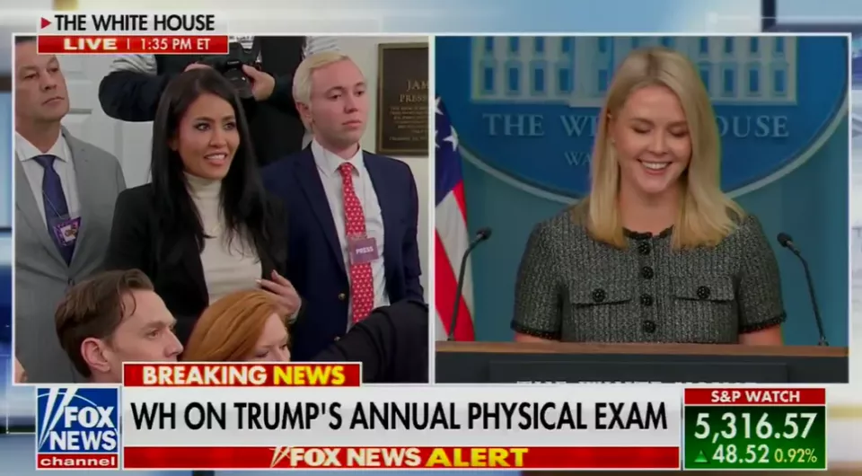 现年45岁的卡斯特罗诺娃来自林德尔电视台 (Lindell TV),她向莱维特询问了有关总统唐纳德·特朗普的身体情况,因为当晚特朗普即将接受他第二任期开始后的首次体检。