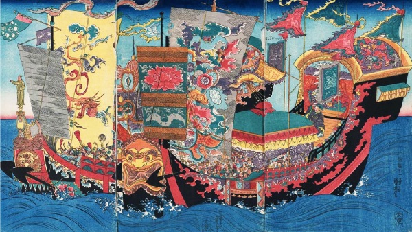 徐福渡海帆船的浮世繪。(圖片來源:公有領域)
