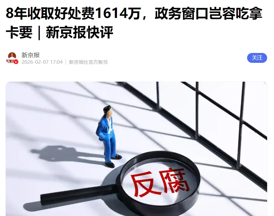 为什么整个体系在这个事情上失灵了呢?这可能才是这个新闻最大的问题,而《新京报》的评论文章,重点谴责了个别政务工作人员利用“微权力”搞腐败,却只说“这期间相关监管部门为何没能及时发现,也该有所追问”。是的,这么核心的问题,只配个“也该”。
