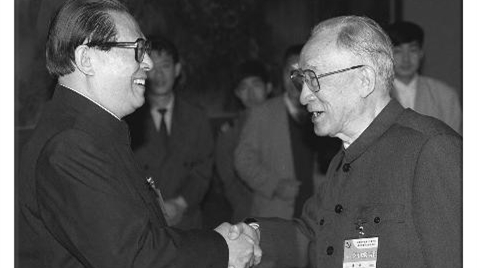 薄一波(右)在内斗中扳倒了三个中共领袖,独对江泽民颇善。(网络图片)