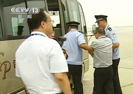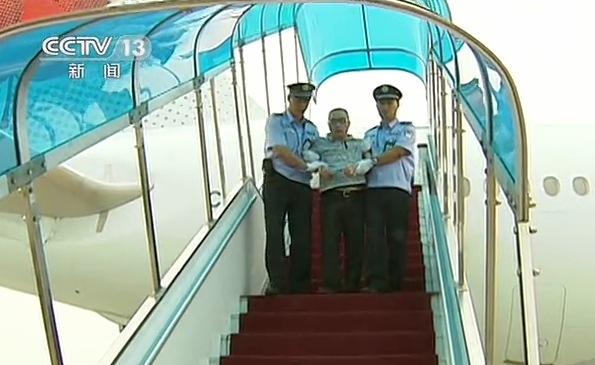 赖昌星被遣返 从飞机上走下图片来源:中国中央电视臺13套,视频截图