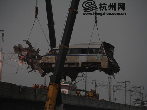 伊伊被救出后,车头被吊下来