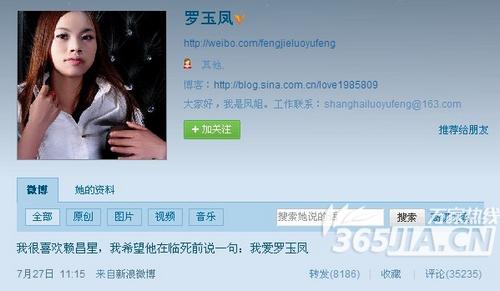 一向语不惊人死不休靠着雷人言语博出位的网络红人凤姐近日又微博发出雷人言论。一句“我很喜欢赖昌星,我希望他在临死前说一句:我爱罗玉凤。”短短一句话瞬间引来众多网友拍砖叫骂,更有网友调侃道:“我恳求奥特曼今晚就能来到地球,让我们一同见证罗玉凤被奥特曼摆平的那一伟大时刻吧!期待中Ing……”