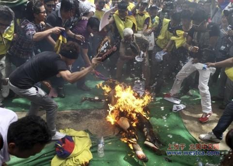 一名青年藏人3月26日为抗议中国国家主席胡锦涛访问印度与中国的西藏政策在新德里的示威活动中自焚身亡