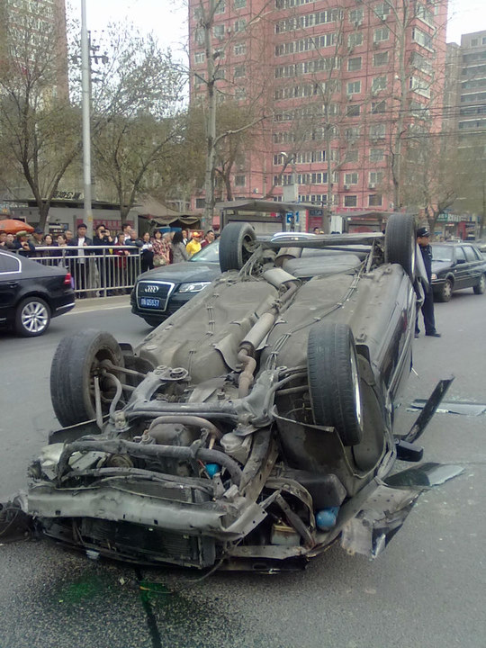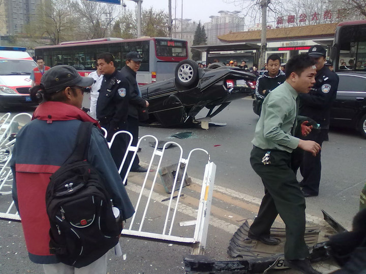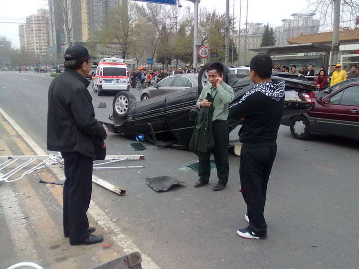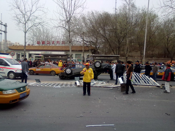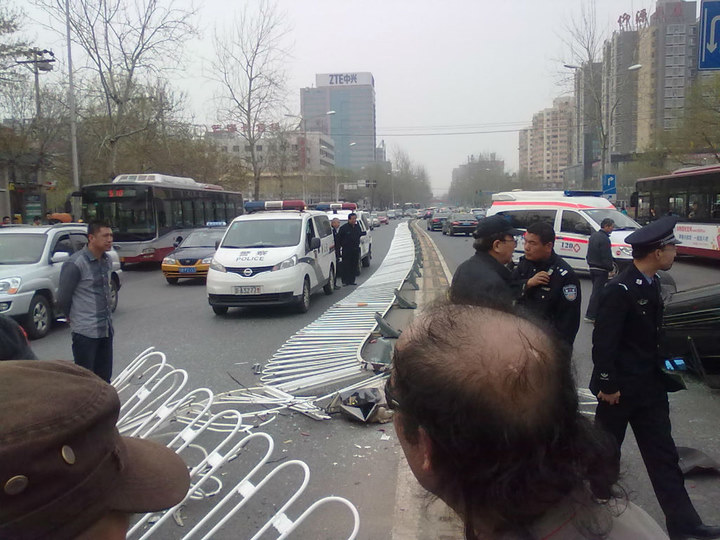 北京惊现军车"马路杀手" 护栏全被撞倒