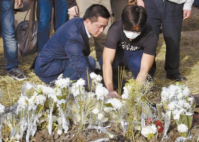■九名遇難港人親友,2日到樂蜀甘蔗田默禱及獻花悼念。伍明輝攝