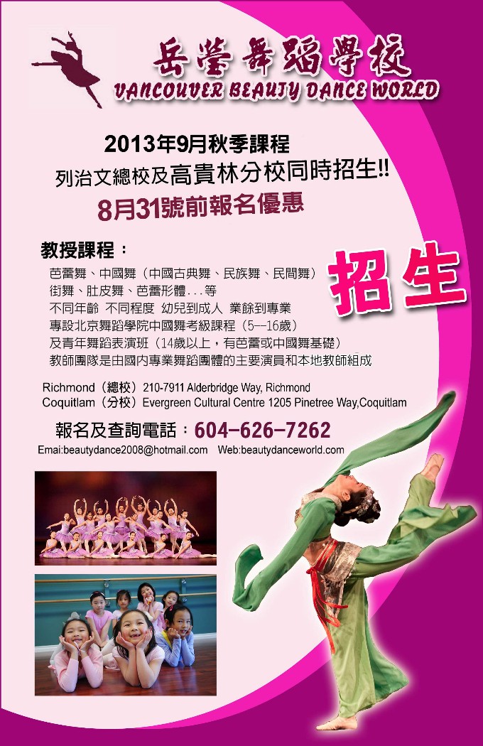 温哥华音乐舞蹈: 岳莹舞蹈学校秋季开学最后优惠