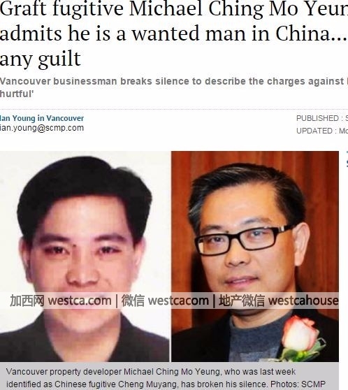 CBC援引加拿大移民和难民署(IRB)2日发布的文件显示,Michael Ching “在加拿大境外犯了严重的非政治罪行”,从而拒绝了他去年11月提出的难民身份的申请。以此证实Michael Ching就是程慕阳。还在温哥华的著名地产开发商程慕阳似乎并不是隐匿在加拿大的唯一一名外逃人员。