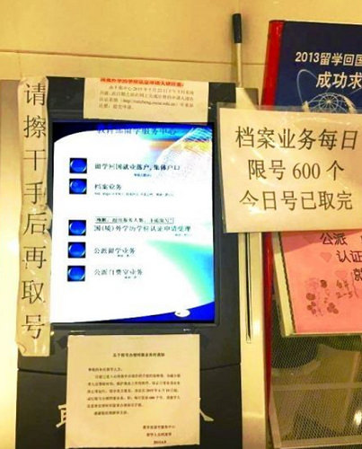 學位認證人數達到“峰值”時,大廳內的取號機器會停止發號。