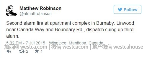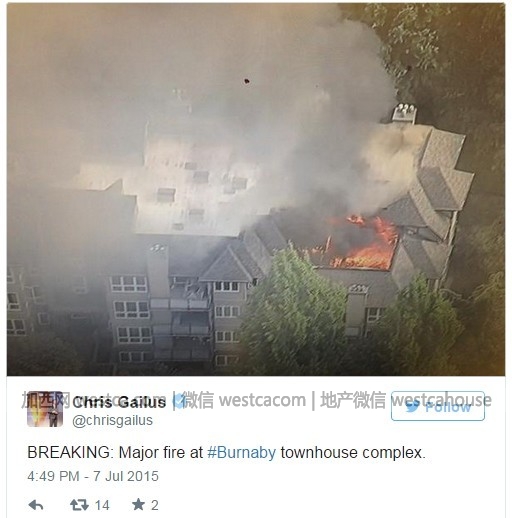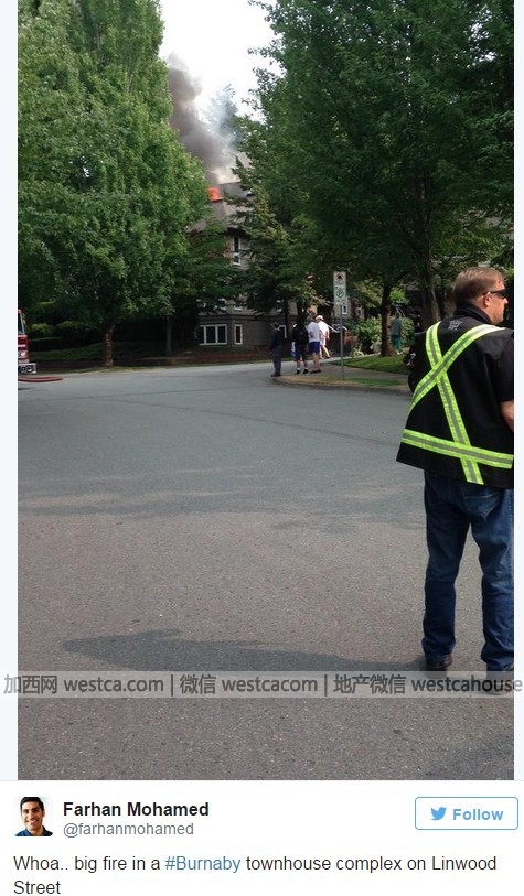 昨天下午5點左右,本那比Cascade Village社區城市屋發生嚴重火災,具體位置在離本那比醫院不遠處的Linwood街上,Smith Ave東面。這個社區建於1989年,有250個單位,都是木結構的民居。