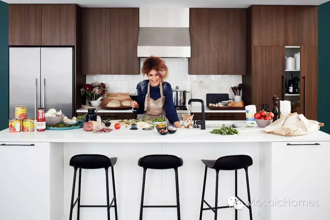• Bertazzoni 不修光系列成为了厨房设计的焦点(可升级选择不同颜色)。