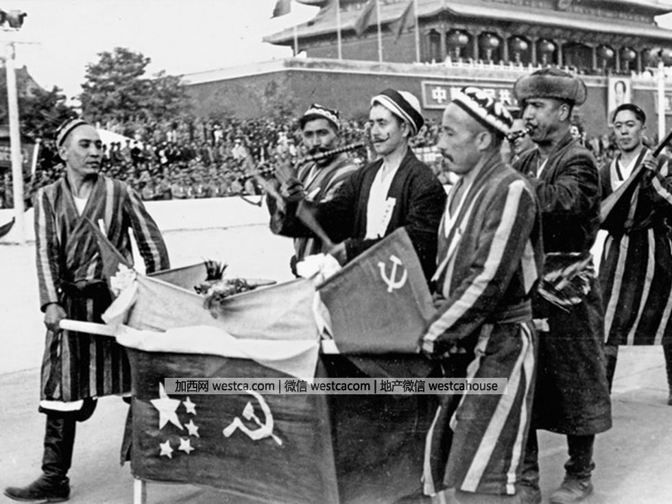 1950年,北京天安门前,新疆文工团载歌载舞。(图源:VCG)