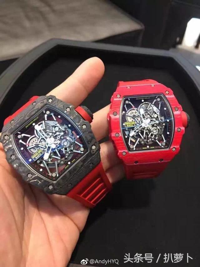 识货的网友一看:这不是有着亿万富翁入场券之称的理查德米勒吗? 史上均价最贵腕表。这两款是RM 011系列,全球限量50枚,价格至少150万起,果然是壕啊~