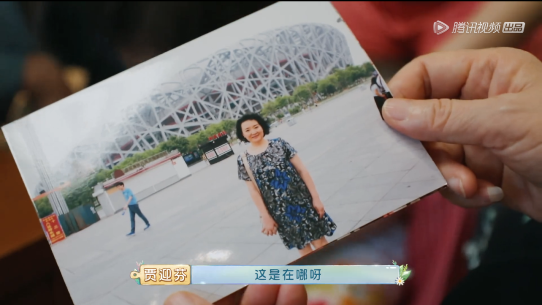 讓我最印象深刻的是小芬姨,她是這一季五位老人中年齡最小的,58歲。第一次自我介紹,她說我從2019年記憶力就特別差,畫面上出現文字“其實已經患病3年”。她的病症甚至嚴重到看到自己曾經的照片認不出當時的地點,工作人員提示她是鳥巢,她反問鳥巢是啥。