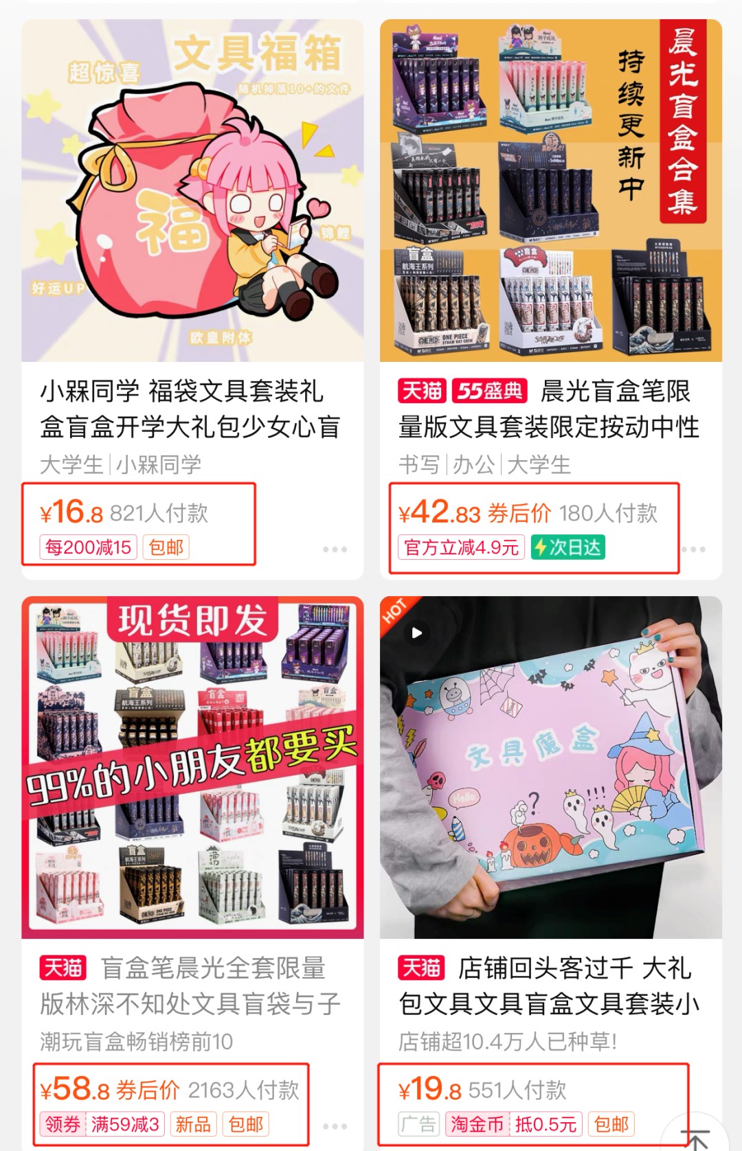 对于买“文具盲盒”的学生们来说,为了更快地开出隐藏款或是自己喜欢的款式,会一气买下许多套文具,实际上大大超出了“实用率”。而有些“文具盲盒”的价格并不便宜对于未成年来说大量购买确实“难以负担”