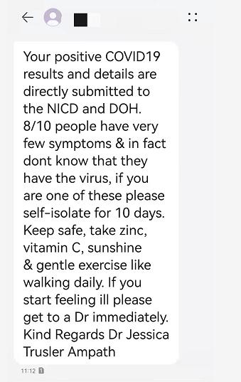 ↑郝先生收到的当地政府的提示短信,建议他自行隔离 10 天,服用维生素和锌片,多晒太阳。