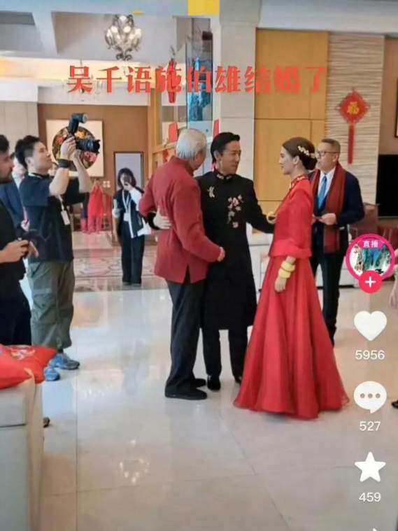 施伯雄在領證文案中甜喊吳千語“施太”,高調承諾永遠,大呼“my forever”,並在英文“請持續關注婚禮”的下方特意配以中文翻譯:“期待2024婚禮”,疑為妻子抱屈,曬幸福的同時,也是辟謠聲明。