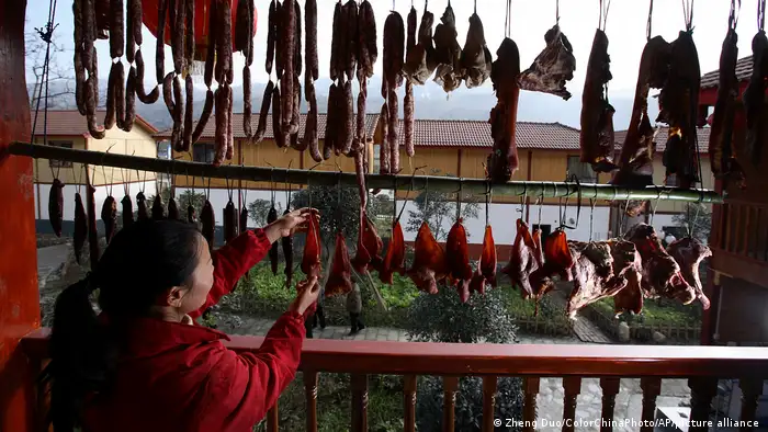 德国之声中文网)年关将至,美食飘香。腊肉是很多中国家庭必不可少的一道菜。12月26日,中国央视《新闻30分》做了一则专题报道,讲述四川一位农妇如何通过制作腊肉致富,画面上悬挂腊肉,小标题包括"用好原料好工艺打造腊肉品牌"、"让世界尝到腊肉的味道"、"让腊肉走向世界"等等。