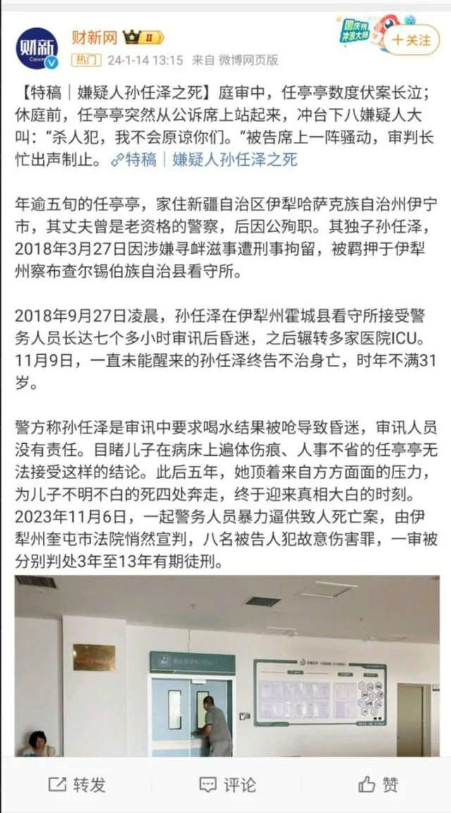 1月14日,财新再次重磅发布一则关于新疆警方刑讯逼供的特稿。