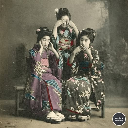 大约在1910年,一张日本老明信片上画着三位舞妓(艺伎学徒)摆出三猿的姿势。![]() ...... [更多...] |