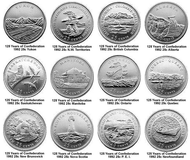 年份:1992 为纪念加拿大联邦125周年,发行了12枚纪念加拿大12个省及地区的套币。其中New Brunswick;Northwest Territory;Saskatchewan由于发行中有错版币,因此就有了Type。