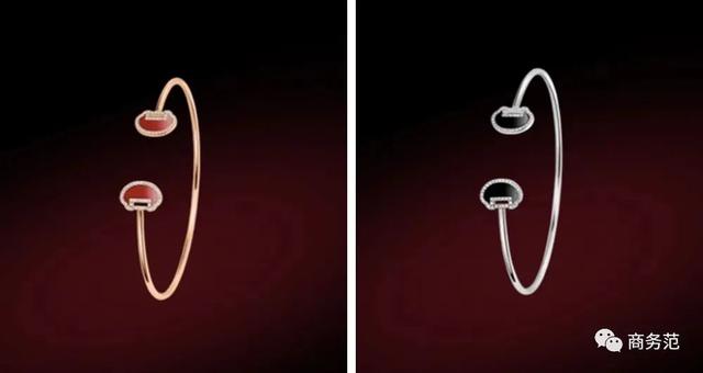 Yu Yi手镯的设计尤其好看,开放式线圈的两端分别都饰有一个如意锁,非常精致小巧,共有两种材质可选,红色玛瑙搭配黄金喜气洋洋,黑色玛瑙搭配白金经典又大气。