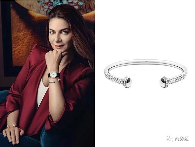 伯爵的Possession时来运转系列,也是大牌手镯中很值得一入的款式,伯爵CEO Chabi Nouri女士就戴了一枚镶钻设计的,亲自上手带货。