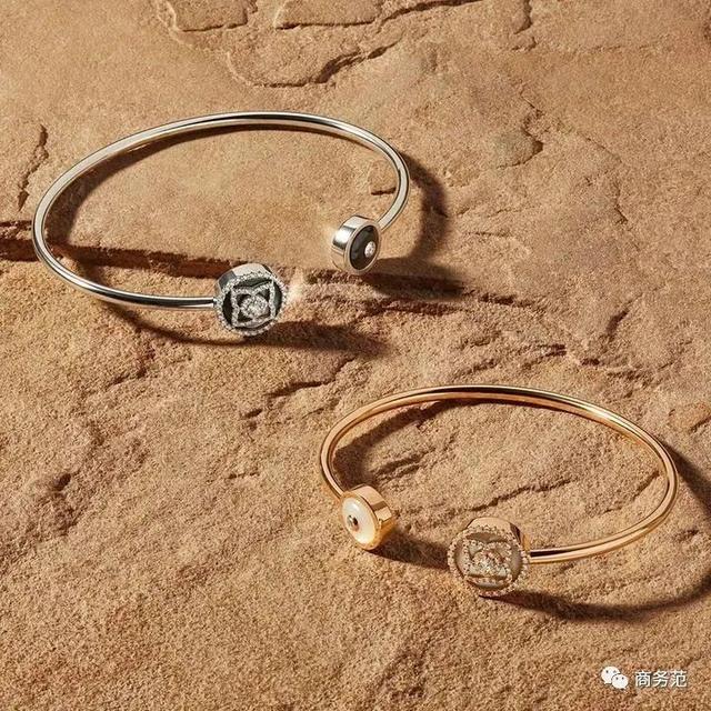 他家最近推出了一个Chopard x 007 Happy Hearts系列,意在致敬坚定而勇敢的邦德女郎,其中就有包含两款Happy Hearts手镯,用玫瑰金填充爱心、钻石点缀打造,色彩温柔又显气质。