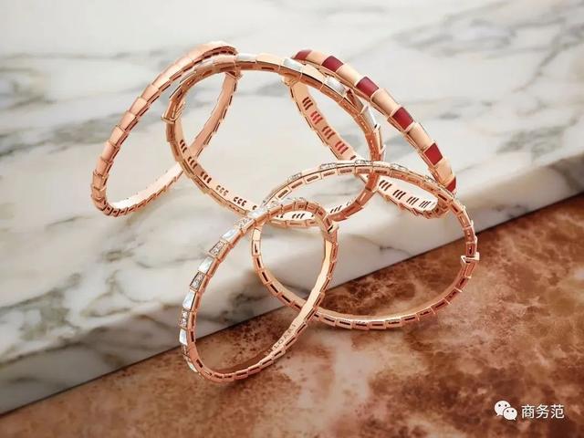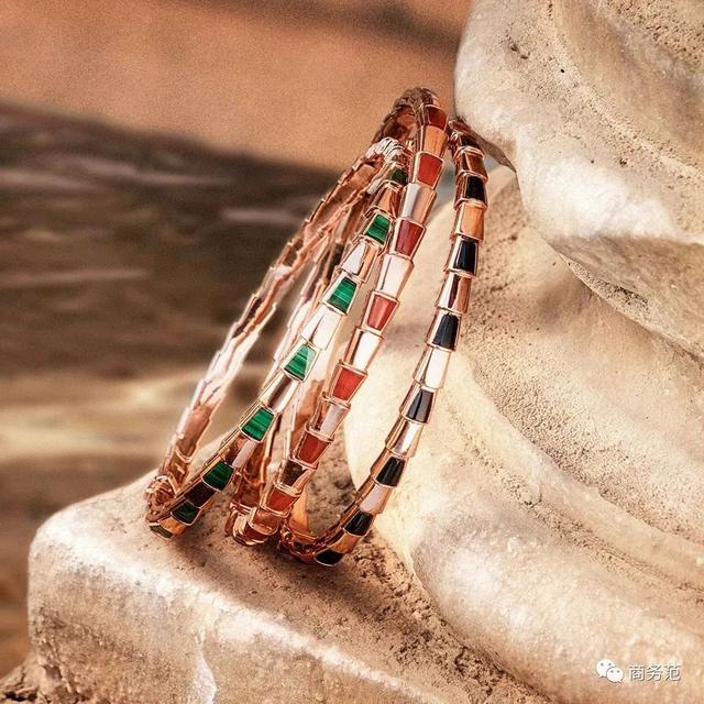 这个系列的手镯风格华丽大胆,以蛇为灵感,象征美丽和智慧,设计将蛇的鳞片环环相扣连成一圈,有种自然的动感,很适合性格张扬的女生。