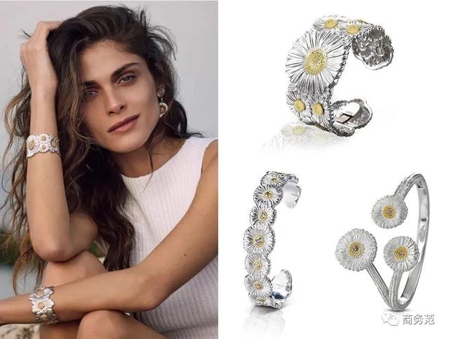 布契拉提的雏菊手镯主打纯银材质,款式多样,都极具造型感,戴在腕间很有古典艺术感。