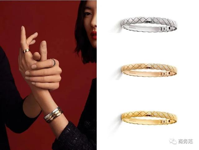 这个系列的手镯设计简单大气,表面精工雕刻的菱格纹是最大的特色,既有古典韵味又非常摩登时髦,也完美传承了Chanel的品牌精神。