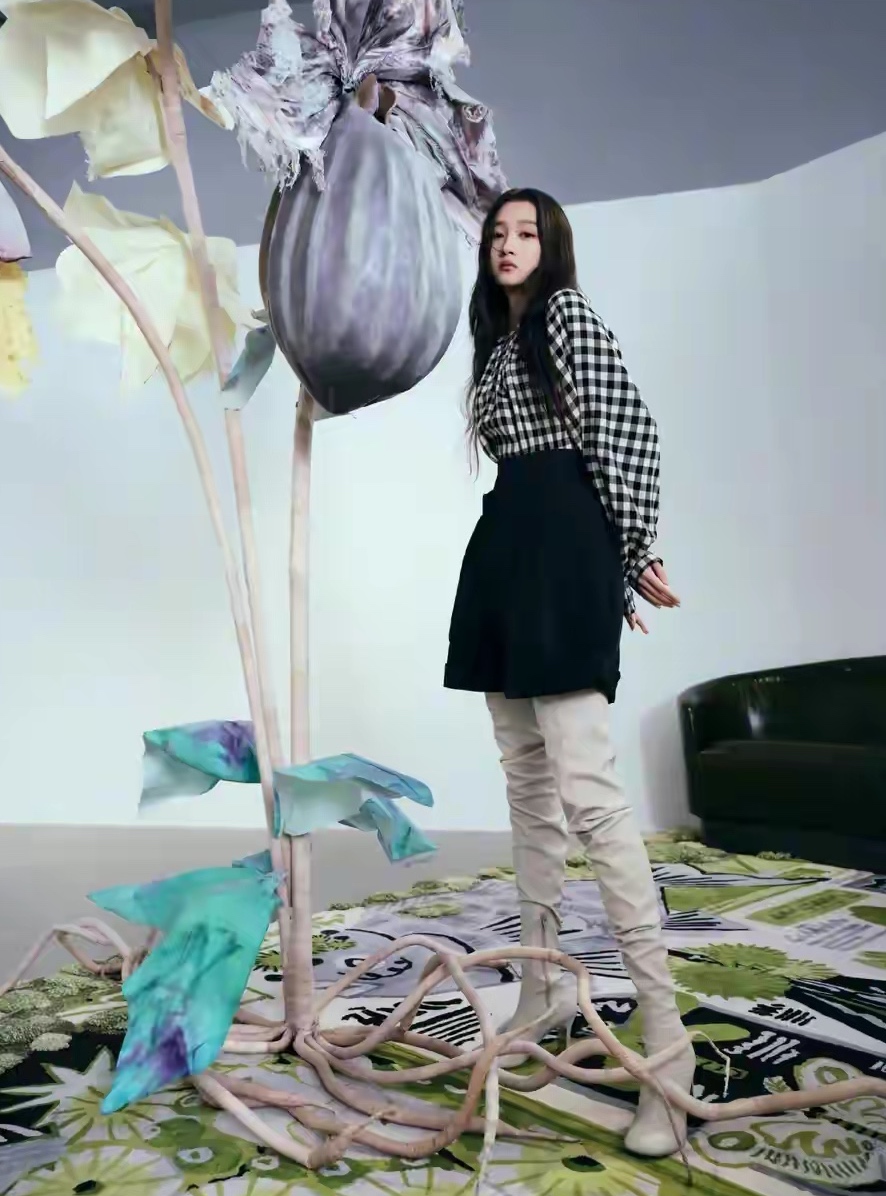 登上杂志封面的她,长腿优势更是展现得淋漓尽致,瞧瞧这大高个,谁看了不得问一句:“国民闺女到底吃了啥,才能长这么高。”