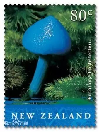 看清楚是哪個國家的鈔票了嗎?沒錯,就是新西蘭了。原來霍氏粉褶菌(藍瘦香菇)是由奧地利地質學家兼博物學家ChristianGottlieb Ferdinand von Hochstetter最早發現於新西蘭並進行了描述記錄的,而且目前全世界只有在新西蘭才發現藍瘦香菇的存在。