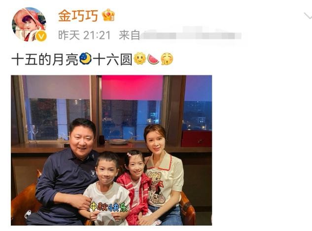 9月22日,46岁的演员金巧巧在社交平台晒出了一张全家福。