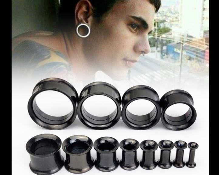 擴耳不像打耳洞,可以“一錘定音”。相反,它需要循序漸進,“步步為營”——首先,擴耳者需要一套尺寸不同的“擴耳錐”,讓耳洞逐漸適應張力,等到耳朵不再紅腫流血,再使用圓圈形狀的耳擴,然後逐漸升級尺碼。