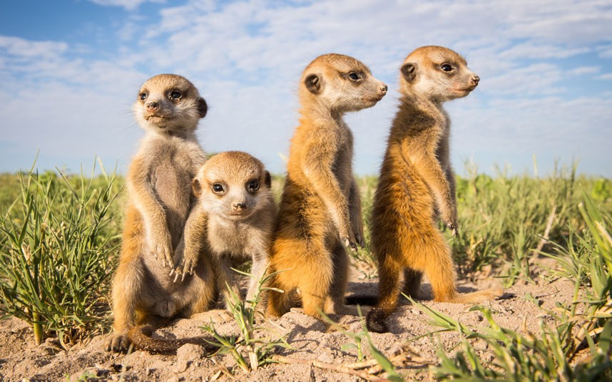 在李安导演的《少年派的奇幻漂流》中,萌物狐獴在一座漂流的岛上遍地生存,它们白天在陆地上嬉耍,夜晚就会到树上与派争抢地盘,引得观众的注意。狐獴是一种小型昼行性动物,居住在南非的卡拉哈里沙漠,主要包括安哥拉、纳米比亚和博茨瓦纳。野生动物摄影师Will Burrard-Lucas花了六天时间在博茨瓦纳Makadikgadi地区拍摄狐獴,英国《每日电讯报》近日就刊登了他的这组作品。