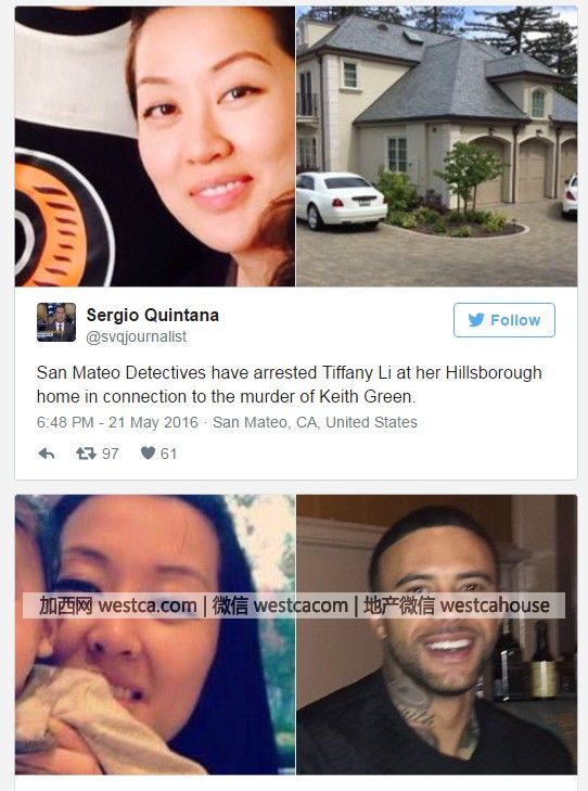 30岁的Tiffany Li(李凡尼)因涉及合谋杀害前男友Keith Green被捕